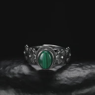 Inspired by blooming flowers and the natural beauty of malachite, this ring combines vintage charm with spiritual energy. The floral silver band highlights the vivid green stone, creating an elegant and timeless design.