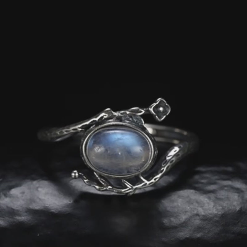 S925 Silver Moonstone Ring – Plum Blossom Inspiration